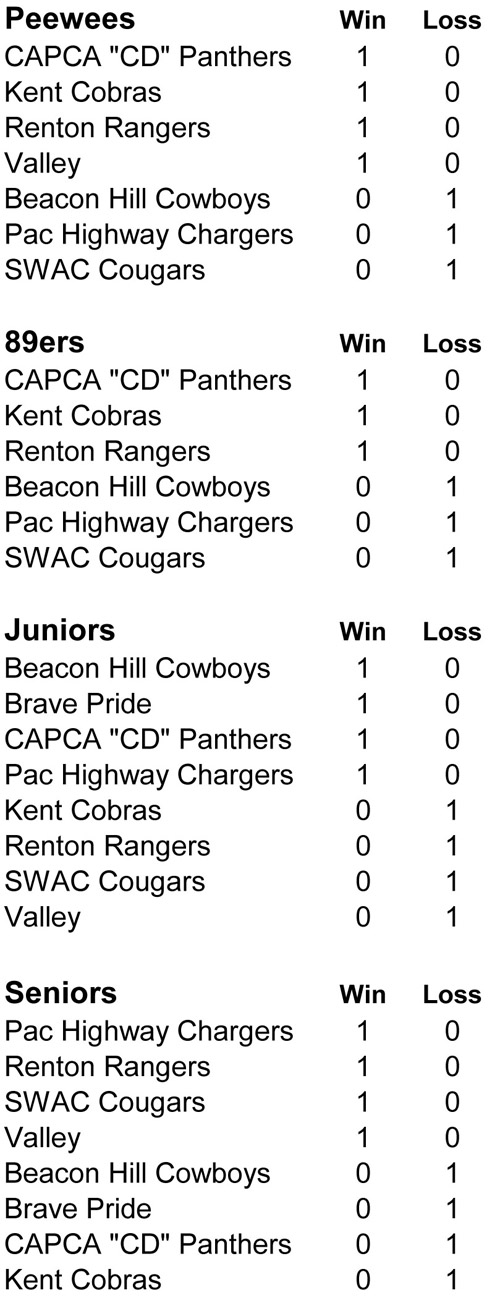 Youth Football Presented By: 2014 GSYFCL Standings – Week 1 September 10, 2014 Share this: Share on Facebook (Opens in new window) Facebook Share on X (Opens in new window) X Share on LinkedIn (Opens in new window) LinkedIn Email a link to a friend (Opens in new window) Email Print (Opens in new window) Print FacebookTwitterWhatsAppEmail Benson Bruins Roll To 31‑6 Victory In WYFL 8U Championship Rise Wins WYFL 10U Title With 26-6 Victory Over Federal Way Benson Rallies From 18 Points Down To Win WYFL 12U Championship... Benson Bruins Outlast Royal T Titans To Win WYFL 14U Championship,... Benson Bruins Shut Out CD Panthers 18-0 To Win WYFL 6U... Football, Family, And Faith Are What Drive Royal T’s Chris And... Discipline, Heart, And Teamwork Drive B12 Bearcats’ 8U Championship Run Royal T Titans Use Second-Half Surge To Defeat B12 Bearcats 51–25,... B12 Bearcats Surge Past CD Panthers, 33–19, To Reach 8U Championship 8U Benson Bruins Cruise Into Championship Game With 40-0 Victory Over... Federal Way Hawks Rally Late To Defeat Benson Bruins 7–6 And... Rise Defense Shuts Out Bruins To Their Punch Ticket To 10U...