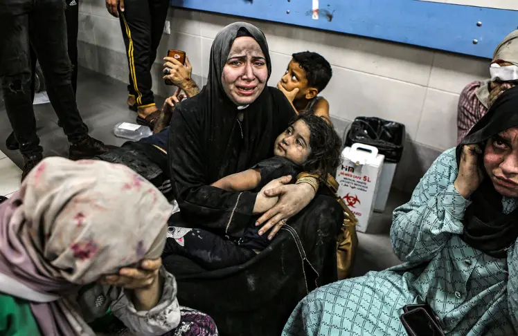 The hospital tragedy comes as health services in Gaza are on the brink, with no fuel to run electricity or pump water for life-saving critical functions. UN agencies have warned that stores are less than a week away from running out of food stocks and that Gaza’s last seawater desalination plant had shut down, bringing the risk of further deaths, dehydration and waterborne diseases.
