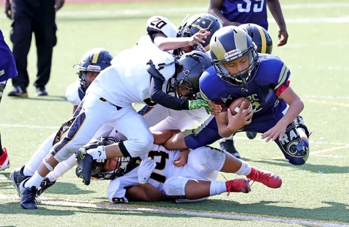 The Benson Bruins 9U team started slowly but finished strong in a dominant 32-0 shutout over the C2C Rams. Johzias “JB” Failautusi had a field day, rushing for 178 yards and four touchdowns while also hauling in a 45-yard touchdown reception to lead the Bruins’ offensive explosion.