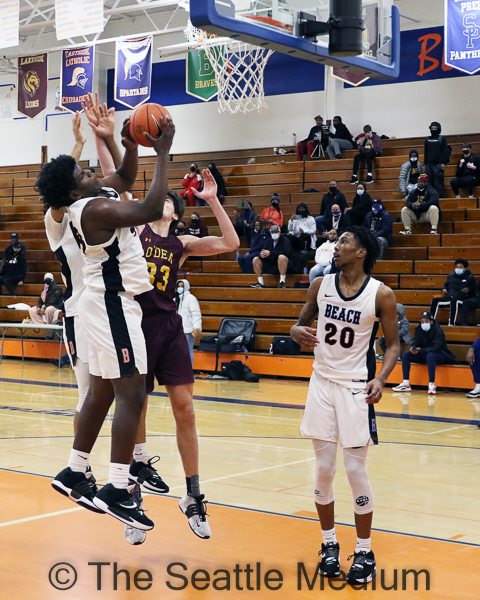 Down the stretch, the Vikings did not allow their opponents to score or get second chance opportunities in the final 1:30 of the game, and with 24.4 seconds left Josh Conerly’s free throw secured Rainier Beach’s 62-57 win.
