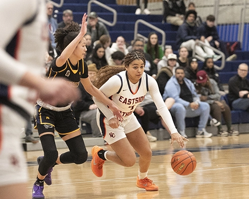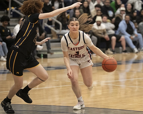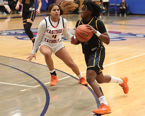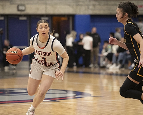 Eastside Catholic started with possession to begin the second half but quickly turned the ball over. While Bellevue still held onto a slim 5-point lead, both teams continued to rack up points, keeping the score close. Nduka was a beast in the paint, making contested shots and drawing fouls. With 2:36 left on the clock and the score 43-38 in favor of Bellevue, Simanton scored 4 points, and teammate Trinity Palmer-Wilson converted a free throw as the Wolverines continued to increase their lead. However, the Crusaders’ Talia Cermak drained back-to-back three-point shots to close the gap to 48-44 heading into the fourth quarter.