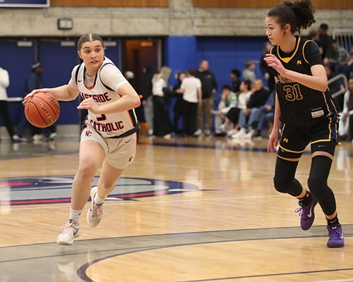 The Crusaders won the opening tip, and Sophie Lugolobi immediately put Eastside Catholic on the scoreboard to claim the game’s first lead. From there, both teams settled into a back-and-forth rhythm, trading baskets on nearly every possession throughout the first quarter. Defensive intensity matched the offensive pace, as Bellevue and Eastside Catholic forced each other into multiple shot clock violations. As the quarter came to a close, the two teams had battled to an 11-11 tie. Amy Nduka led the Crusaders with 8 first-quarter points, while Iyla Jones had 4 for the Wolverines.