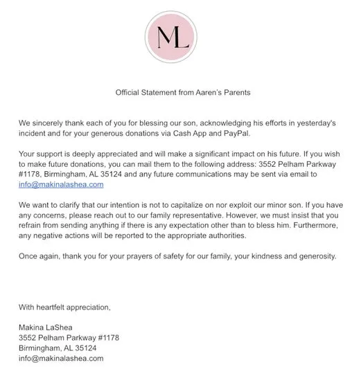 The parents clarified that the donations will make a “significant impact” on their son’s future, and the intention of opening their doors to more donations “is not to capitalize on nor exploit,” their minor son.