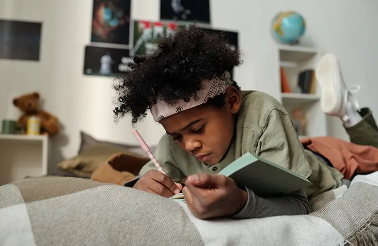 For children with lingering thoughts from the day or stories they want to keep telling, try introducing a journal. Incorporate 10 minutes of journal time into your nightly routine and require them to write or draw every night. You can read it together the next day and discuss if they want, but the process mostly acts as a physical release for all of those pent-up thoughts.