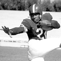 Washington is often characterized as the “Jackie Robinson of Cougar Football” because he not only helped break color lines at Washington State University from 1951-54 but did so in spectacular fashion. He was a team captain and an All-Coast and honorable mention All-America selection, and his Cougars defeated rival Washington three times in his four years on campus. In 2011, he was inducted in the WSU Athletics Hall of Fame. He called the honor “one of the greatest moments in my life” and said “all my roads go back to Pullman.” He often referred to WSU as “my true north” and said it was where he “learned how to learn.”