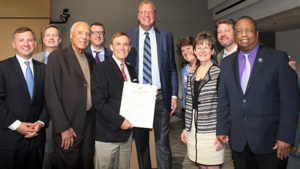 Jack Sikma joined by Councilmembers and his Hall of Fame Coach Lenny Wilkens after the Council recognized Sikma’s Hall of Fame career.