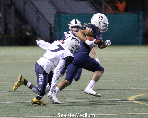 Storm sophomore running back Djouvensky Schlenbaker provided a bright spot for Sqaulicum as he rushed for 68 yards on 13 carries and a solo touchdown late in the third quarter.