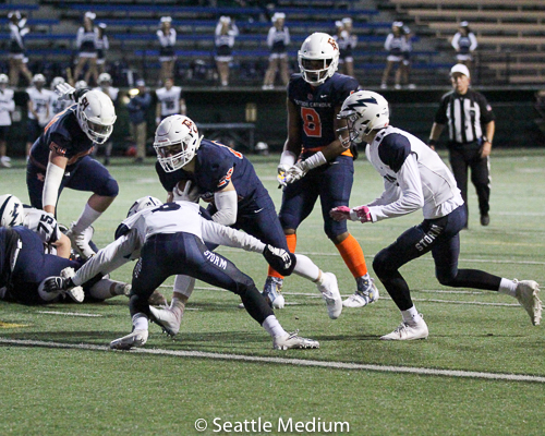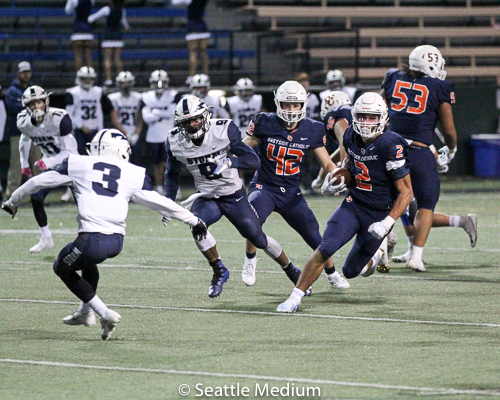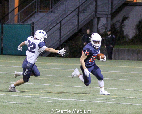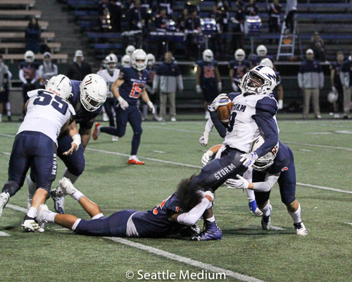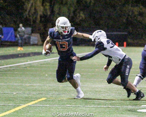 The #2 seed Eastside Catholic Crusaders (9-1) hosted the #15 seed Squalicum Storm (9-3) of Bellingham, Washington Friday night at Memorial Stadium in the first round of the WIAA 3A state tournament.