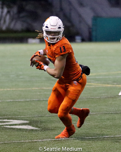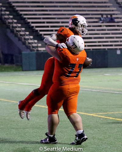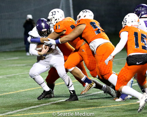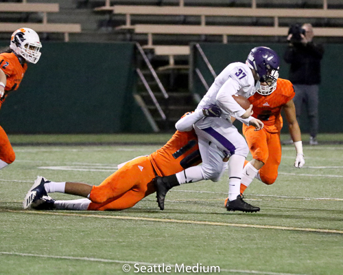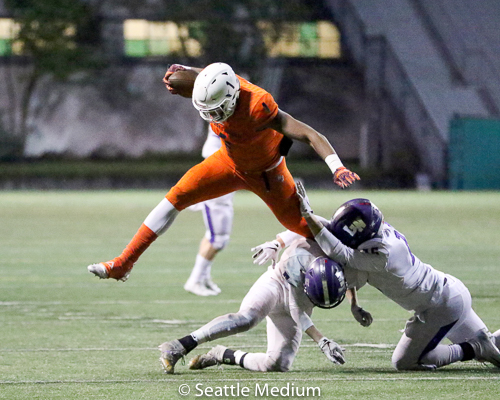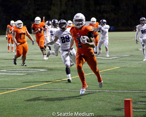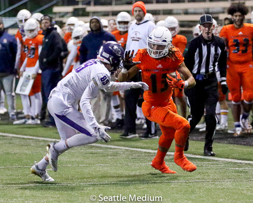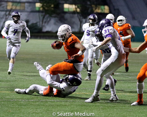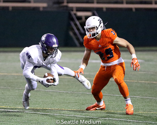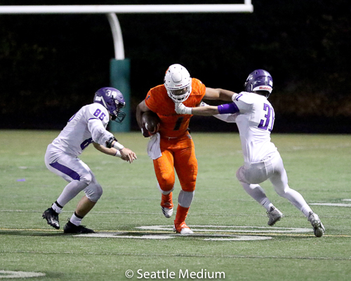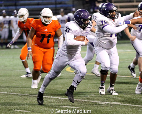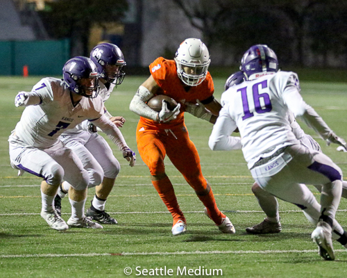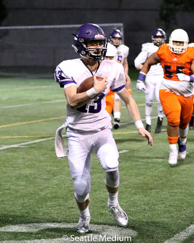 Sam Adams, II had 138 rushing yards and four touchdowns (3 rushing, 1 receiving) to help the Crusaders post a 42-12 win over Lake Washington in the WIAA 3A playoffs.