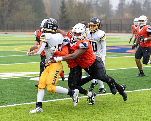 Southridge’s offense finally began to pick up positive yardage against Eastside Catholic’s defense. Jackman and Borisch contributed some yardage on the field, while Ramses Chavez moved the chains on multiple key plays for the Suns. A series of small but steady gains brought the Suns deep down the field, but an incomplete pass on 2nd-and-8 stopped the momentum as the third quarter ended with no additional scoring. The Crusaders still held onto their lead, 42-0.