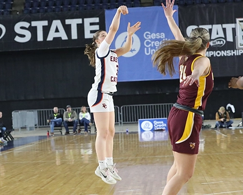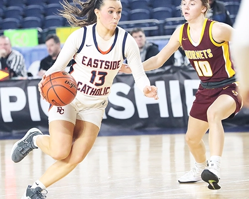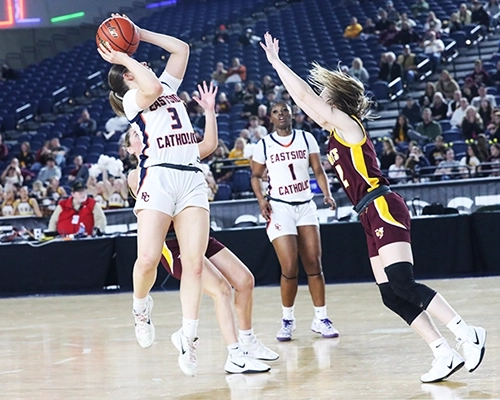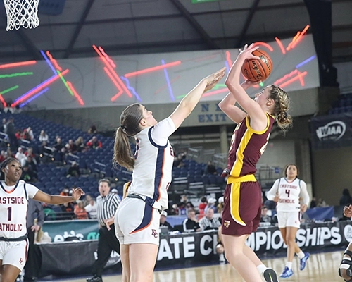 Lugolobi started the second half with a jump shot that pushed the Crusaders’ lead to 38-17, which ignited a 6-0 run as Eastside Catholic built a 23-point lead at 42-17. With three minutes remaining in the third quarter, Maggee Schmitz scored all 9 of White River’s points in the closing minutes, while Nduka poured in 4 points as the Crusaders held a commanding 50-26 lead heading into the final quarter.
