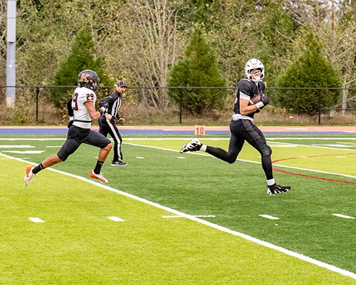 The Crusaders struck early and often, erupting for 27 points in the first quarter alone. The tone was set on Kennewick’s opening possession when the Lions went three-and-out, and Eastide Catholic’s Asa Thompson returned the ensuing punt 73 yards for a touchdown. Just minutes later, Eastside Catholic quarterback Luca Villasenor launched a 58-yard touchdown strike to Tytan McNeal to make it 13–0. Eastside’s defense forced another quick punt, and the Crusaders capitalized again, with Villasenor connecting with Thompson for a 33-yard touchdown. Before the quarter ended, Villasenor found Nepo Fareti from 25 yards out, giving the Crusaders a commanding 27–0 lead.