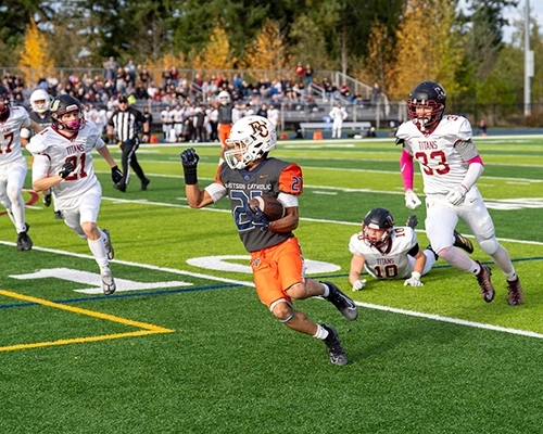 The Crusaders’ second-string players used the running clock strategically and maintained control. On the other side of the ball, the Crusader defense remained tough. Even though University moved the chains a few times late in the fourth quarter, Eastside Catholic kept the Titans off the scoreboard to secure a 48–0 shutout victory.