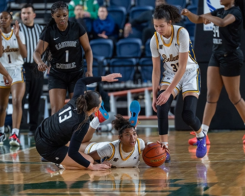 The Crusaders had possession to start the fourth quarter, but Mayorquin stripped the ball away and quickly ran down the court for a basket to make the score 36-30. After a putback from Nduka, she picked up her 4th foul 45 seconds into the final quarter and subbed out momentarily. Jones then stepped up to the free-throw line and sank two shots to cut the deficit to 38-32.