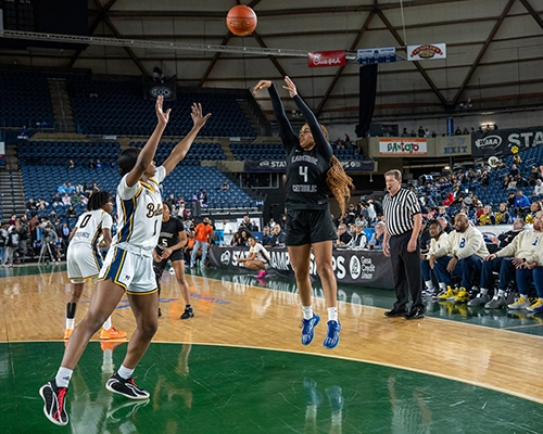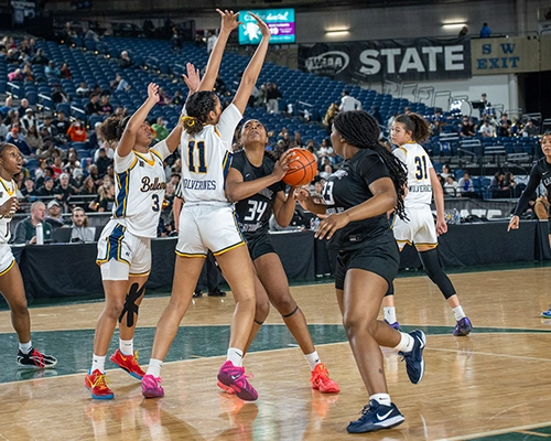With 6 minutes remaining, Nduka checked back into the game. Mayorquin added a basket to help Bellevue stay in the game. But the Crusaders amped up their defensive and offensive pressure, as they went on a 5-0 run and forced Bellevue into a traveling violation to extend their lead to 43-34. Jones picked up her 4th foul for Bellevue, sending Nduka to the line, where she added two points to the lead to make the score 45-34. On the very next possession, Jones picked up her 5th and final foul of the game with 4:38 remaining and had to watch the remainder of the game from the bench.