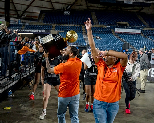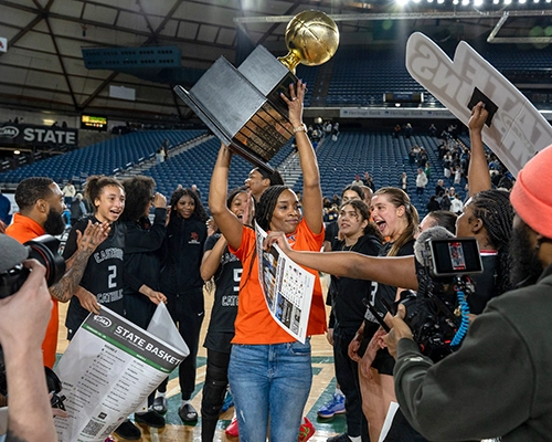After the game, Eastside Catholic head coach Darnellia Russell held back tears as she celebrated the win with her girls.