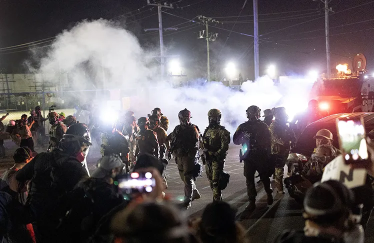 Black said federal officers dispensed “a huge amount of chemical weapons,” adding, “I was drenched from the crown of my head to the socks in my shoes.”