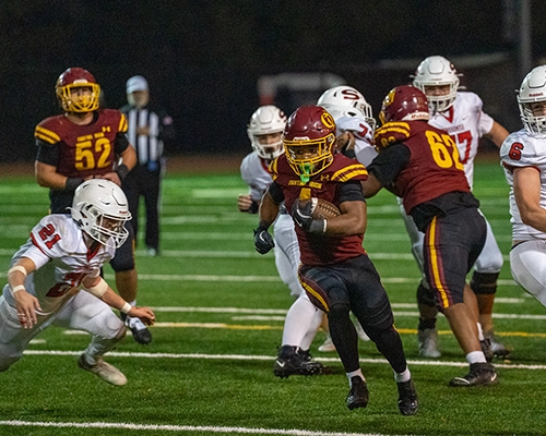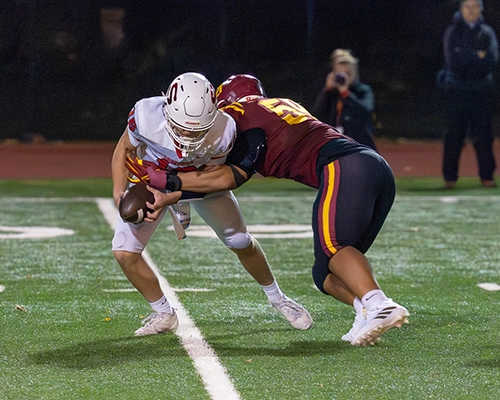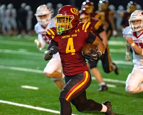 Early in the final quarter, O’Dea’s defense recovered yet another Snohomish fumble, setting up Wilson for one more touchdown—this one a 36-yard dash to the end zone to push the Fighting Irish’s lead to 49–14 with just over 11 minutes remaining.