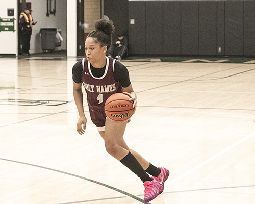 Zarate followed with another three-point shot that brought the Cougars within 17. After a Franklin timeout, Holy Names kept the momentum. Stordahl made two free throws to cut the lead to 45–30, and Franklin was called for traveling, giving Holy Names another opportunity.