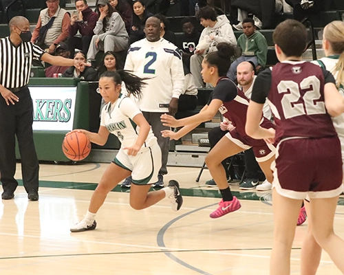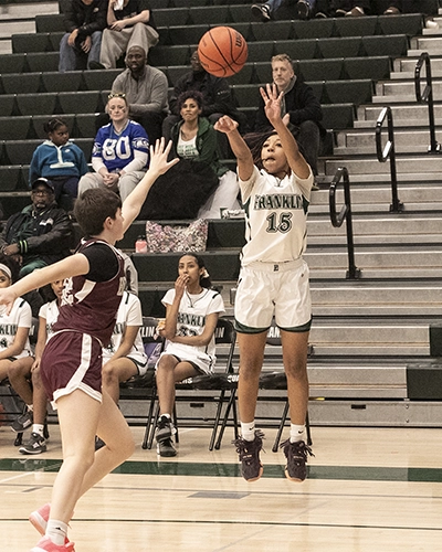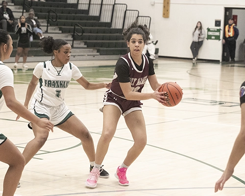 Holy Names won the opening tip but quickly turned the ball over on their first possession. Franklin’s Akeelah Sanh made the Cougars pay right away, hitting a three-point shot to give the Lady Quakers a 3–0 lead. Franklin stayed aggressive on both ends of the ball, and after another Holy Names turnover, Franklin’s Khamille Chappell attacked the basket, drew a foul, and converted both free throws to make the score 5–0.