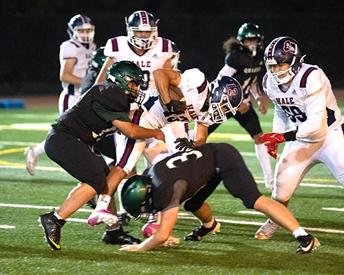 Franklin opened the game by leaning on running back Josiah Echols, who picked up 37 yards on the opening drive. The Quakers appeared to be heading for the end zone until a costly holding penalty erased a near-touchdown run and eventually led to a turnover on downs. Nathan Hale responded with solid runs from Hussein Al-Ibadi and Amara Kenneh, combining for 25 yards to reach midfield. But the momentum quickly shifted quickly, as Franklin’s Corde Frazier sacked Nathan Hale quarterback Sean LeMoine for a 10-yard loss. Frazier would follow with a tackle on Kenneh for a 5-yard loss and forced a fumble in the process. Franklin’s Steven Mpila would recover the ball to give the Quakers excellent field position.