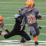 The Lil’ Rangers finished the regular season off the way they started it…….undefeated and dominant. Offensively, Raylen Witherspoon celebrated his birthday by scoring three touchdowns, Marques Meneese added two big touchdown runs of his own, and lil’ brother Micah Meneese added a career long 50-yard touchdown run of his own. The Rangers’ offense also got contributions from Michai Harris and Kingston Mitchell. On defense, the Rangers were led by Patrick “Pat Attack” Turner who had seven tackles and one sack, while teammate David “Big Boy” Shaw dominated the defensive line racking up six tackles and two sacks. The Lil’ Rangers are focused on avenging last years early exit from the playoffs and are seeking their 3rd title in 4 years.