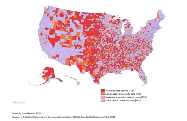 A recent report from March of Dimes revealed that a third of the nation’s counties are designated as “maternity care deserts” — areas with no hospital obstetric care, birth center, or obstetric provider.