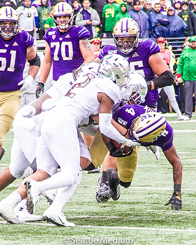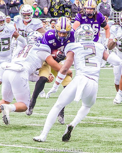 The fourth quarter would be the determining and decisive quarter in the game as the Oregon defense was able to step up and force Washington into two 3 and out situations as well as two fourth down stops that would haunt the Huskies as the clock continued to wind down. The Ducks took full advantage of Washington’s inability to convert late in the game. The Husky defense looked gassed on Oregon’s final drive. Missed tackles enabled the Duck’s rushing attack to play a huge part in closing out the game for them on the road. Habidi-Likio finished the game with 81 yards on 14 carries, and was able to set up Oregon on the 5 yard line for Herbert’s fourth touchdown of the day, as he connected with Redd for the go ahead score, Oregon 35, Washington 31. That would be the final score as Washington drops to 6-3 (2-3 in conference) as Oregon maintains their lead amongst all in the Pac-12 north.