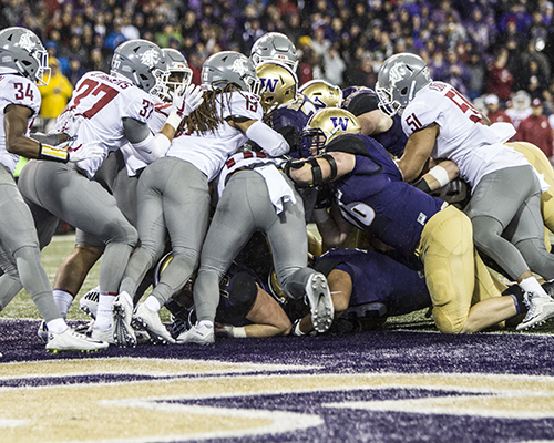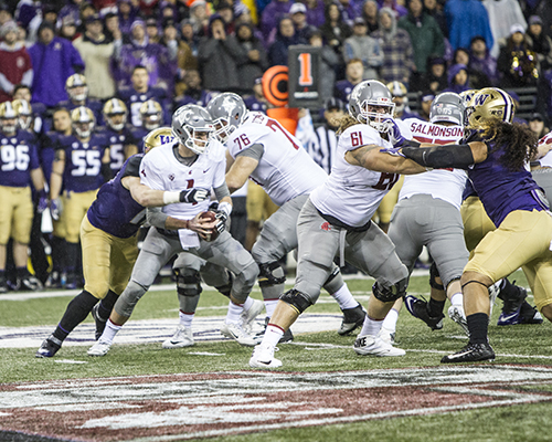 Both teams’ strength is on the defensive side despite the career offensive numbers put up by both quarterbacks. Washington’s Jake Browning broke the school record for career touchdown passes last week against Utah. Washington State’s Luke Falk owns just about every Cougar passing record but the two teams had the top defenses in the conference coming into this game. The Huskies have given up an unprecedented 30+ points in their last two games. Washington was going to have their work cut out for them attempting to stop a Cougar offense that averages over 375 yards passing per game.