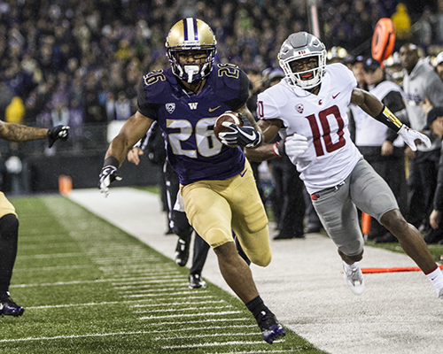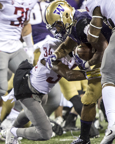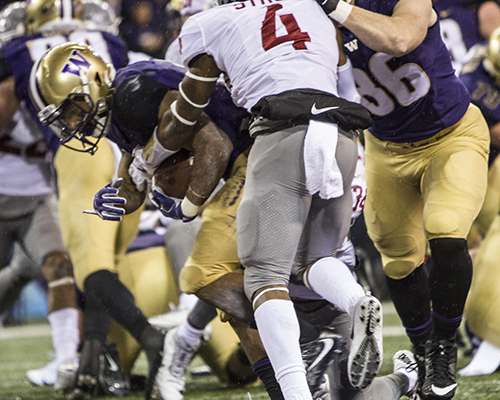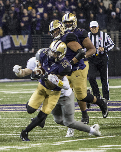 Washington was able to get most of their offensive production on the ground with a stellar rushing performance by junior running back Myles Gaskin. Gaskin carried the ball 25 times for 194 yards and four touchdowns, as the Huskies posted a 41-14 win over the Cougars.