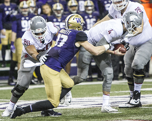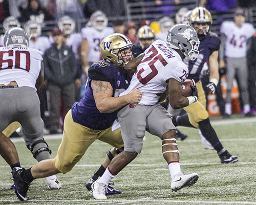 Both teams’ strength is on the defensive side despite the career offensive numbers put up by both quarterbacks. Washington’s Jake Browning broke the school record for career touchdown passes last week against Utah. Washington State’s Luke Falk owns just about every Cougar passing record but the two teams had the top defenses in the conference coming into this game. The Huskies have given up an unprecedented 30+ points in their last two games. Washington was going to have their work cut out for them attempting to stop a Cougar offense that averages over 375 yards passing per game.