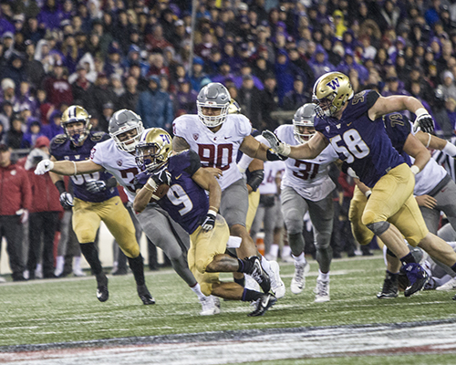 It was senior night at Husky Stadium, and on this Thanksgiving weekend, apples were the main course for the annual Apple Cup game between Washington and Washington State. Husky fans had the honor of celebrating the senior class, and say goodbye to a few all-time greats such as Dante Pettis and Keishawn Bierria. Washington State came into this game with a trip to the Pac-12 championship game on the line with Washington playing the spoiler role. Both teams came into the game with a 9-2 record, making this one of the more intriguing Apple Cup match-ups in years. The Cougars were trying to snap a four game winning streak by the Huskies, and erase the memory of the last two Apple Cups – which they lost by a combined score of 90-27.