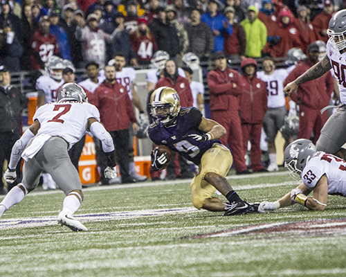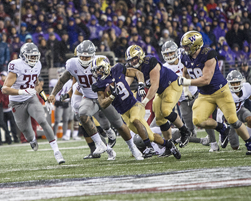 Washington was able to get most of their offensive production on the ground with a stellar rushing performance by junior running back Myles Gaskin. Gaskin carried the ball 25 times for 194 yards and four touchdowns, as the Huskies posted a 41-14 win over the Cougars.