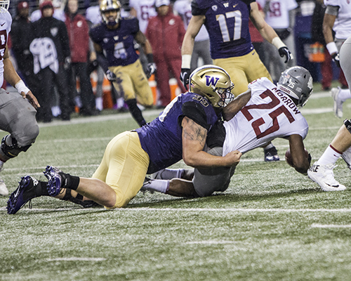 Washington’s defense was up for the task as they held Washington State to just 107 total yards on their way to a 1st half shutout. The Huskies forced Falk into three first half turnovers, which has been a problem for Falk this season. Washington State was only able to cross midfield one time in the 1st half.