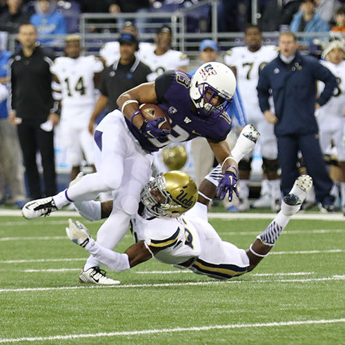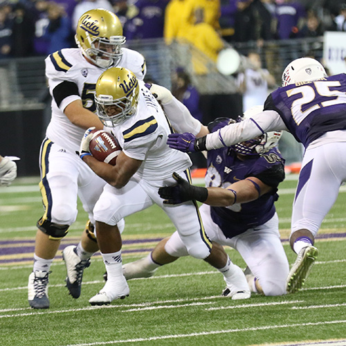 The UCLA Bruins added a ninth win to their winning streak away from the Rose Bowl, defeating the University of Washington Huskies 44 to 30 last Saturday at Husky Stadium. With the dismissal of Husky cornerback Marcus Peters possibly affecting the makeup of the team, the Huskies seemed off their game with a slow start against the 18th ranked Bruins.