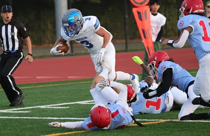 Facing a 14-point deficit early in the game, Ingraham needed to put points on the board quickly. The Rams would establish their rushing attack behind the hard running of Ethan Rudell. Rudell’s ability to run past defenders, bounce off tackles, and move the chains was the boost that the Rams needed.