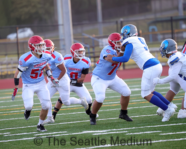 After losing 20-17 on a game-winning field goal last week, the Chief Sealth Seahawks, who started the season 3-0, were looking to bounce back and avoid losing back-to-back games. Standing in their way were the 3-1 Ingraham Rams, who entered the contest on a three-game win streak. The Rams’ lone loss of the season came during week one when they lost to the Ballard Beavers, 43-41.