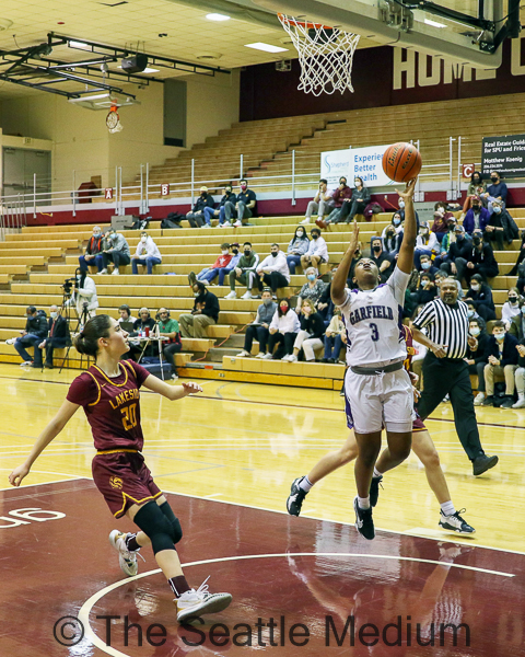 Garfield’s Malia Samuels set the tone with back-to-back layups which gave the Bulldogs energy as a whole. Samuels scoring energy rubbed off on Imbie Jones who finished everything around the rim, her six rebounds provided second chance points and helped initiate the Bulldog offense.