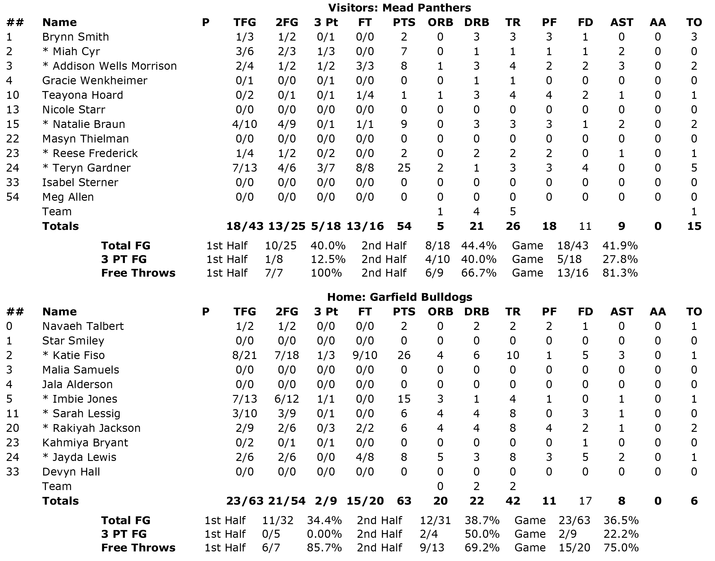 Fiso, who scored only 6 points in the first half, came alive in the second half, especially in the third quarter. Whether she was finishing layups, making free-throw line jump shots, three-pointers, or finding teammates such as Jones for layups, Fiso helped Garfield take over the game, pouring in 20 second-half points.