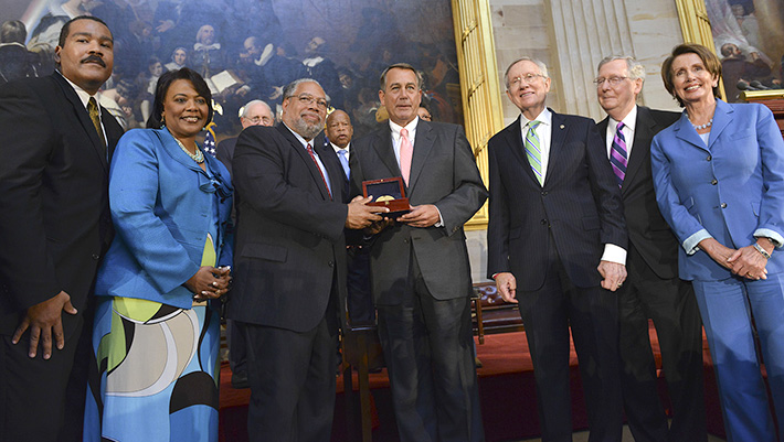 WASHINGTON (NNPA) – During a recent ceremony on Capitol Hill, lawmakers from the United States Senate and House of Representatives celebrated the anniversary of the Civil Rights Act of 1964 and honored Dr. Martin Luther King, Jr. and Coretta Scott King with the Congressional Gold Medal.