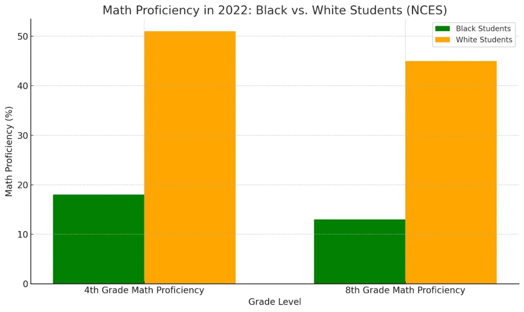 In addition, the 2022 Nation’s Report Card highlighted that the national average was further lowered by dismal performances in five key cities: Baltimore, Cleveland, Detroit, Milwaukee, and Philadelphia. In these cities, only 28% of Black students performed at or above grade level in math, a stark contrast to their White counterparts.