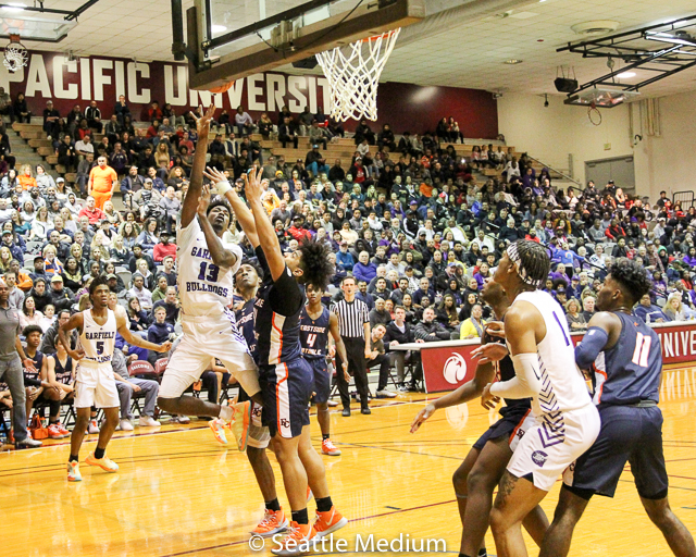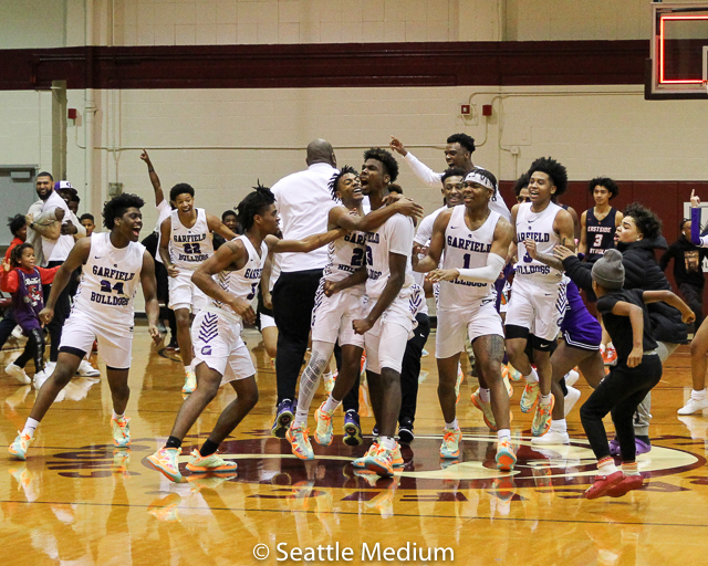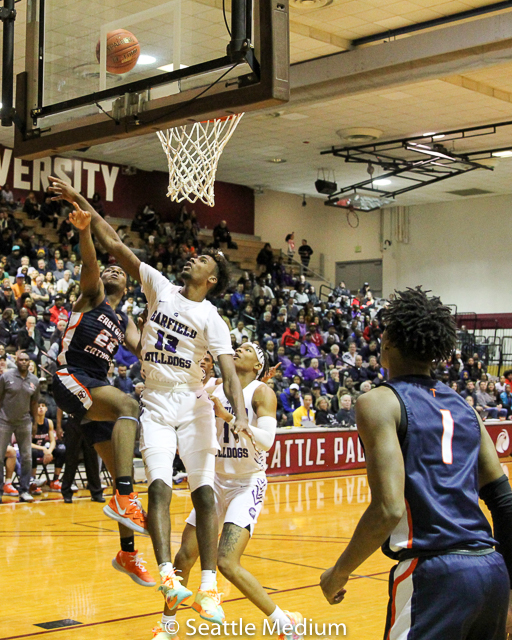 Garfield’s Tari Eason hit the game-winning shot with 0.5 seconds left in the game as the Bulldogs won the Metro League Boys Basketball Tournament championship game, 65-64, over Eastside Catholic Friday night at Seattle Pacific University.