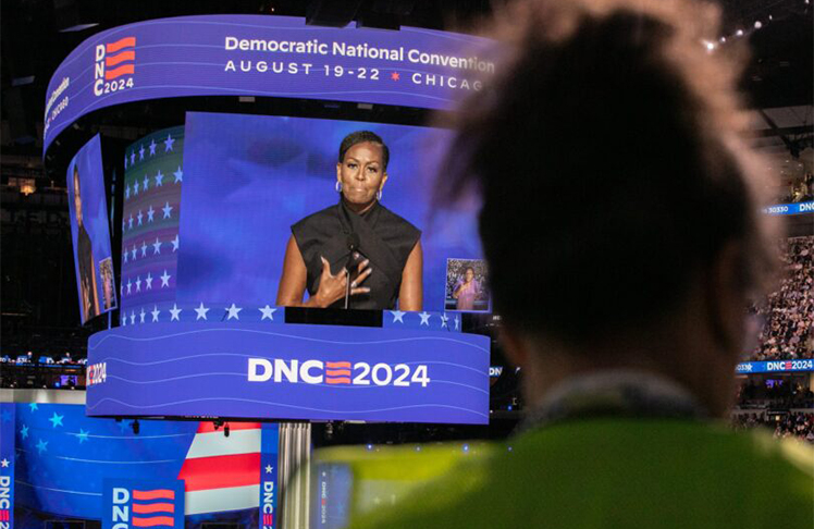 My girl, Kamala Harris, is more than ready for this moment. She is one of the most qualified people ever to seek the office of the presidency. And she is one of the most dignified—a tribute to her mother, to my mother, and to your mother too. The embodiment of the stories we tell ourselves about this country. Her story is your story. It’s my story. It’s the story of the vast majority of Americans trying to build a better life.