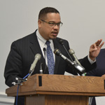 “It’s our tax policy, designed to help the rich, It’s also our trade policy, off-shoring our jobs and it’s also the attack on unions,” said Ellison.