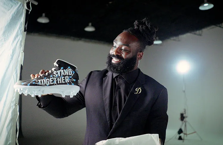 Killebrew said he works closely with the artists who design his cleats and – though he won’t be able to play this year, due to a knee injury that ended his season last month – he was able to show kids working with Café Momentum that their faces would be featured on the cleats.