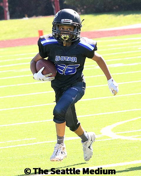 This was the Elijah Cameron and Leatuali’I Savini show for the 5 Star Cougars. Cameron had a total of three touchdowns on the day, two on the ground and one passing. Savini did it on both sides of the ball. On defense he had 7 tackles, with 4 huge sacks! On offense he had 132 yards of total offense with three rushing touchdowns.
