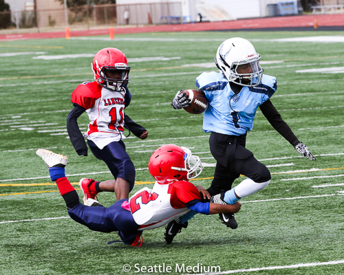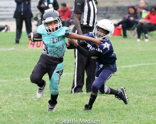 The defending champion 10U Benson Bruins, who were last beaten during the 2017 season, continued their undefeated streak with a 34-0 win over the Auburn Panthers. Quarterback Micah Meneese was on fire scoring three touchdowns and a defensive play of the game, a touchdown saving chase down and tackle. Jordan Noel contributed as well showing impressive speed, scoring twice for the Bruins.