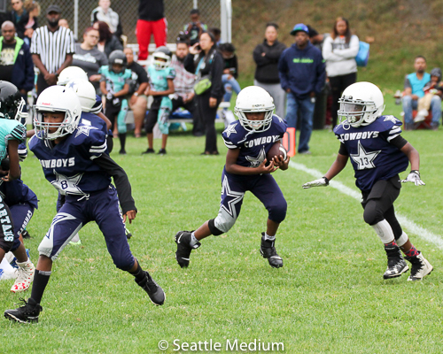 The 10U Cowboys are on a role. The offense is full of weapons. Sir Jewel Glover led the way with a 20 yard touchdown run, he later added a punt return. Zavier “X-man” Traxler got in on the scoring with a two yard touchdown run. The work horse was Esquire Williams gaining a ton of yards and two touchdowns which unfortunately were called back. Other Cowboy weapons to speak of were Jordan Mack and Lamar Darden, Jr. who scored on extra points respectively. Defensively, the Cowboys had no mercy. They only gave up one first down in the first two games. Defense was led by the twins Lyron and Leon Wilkinson both having numerous tackles in the backfield. The game ended at halftime but we weren’t upset because the teams remain healthy. 253 Spartans came in competitive and played valiantly throughout the contest.