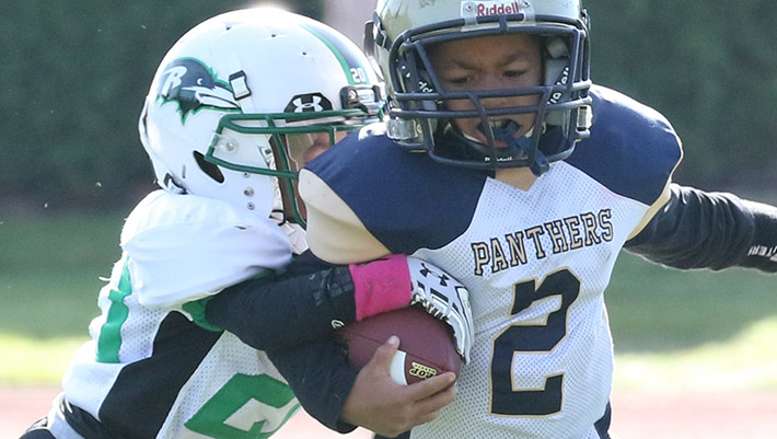 This game of the week showdown between two of the freshmen division’s top teams did not disappoint. The CD Panthers took an early 6-0 lead in the first half. The Bruins came back in the third quarter and tied the score at 6-6 with a William Conroy Jr. touchdown. The score was deadlocked with less than a minute remaining and overtime seemed imminent. Then, with less than a minute the Panthers were able to score a touchdown and secure a 12-6 victory. Panthers Dash Jones found the end zone to keep the Freshman Panthers undefeated 6-0-1. Benson’s Will Conroy Jr. scored to keep the game on edge.