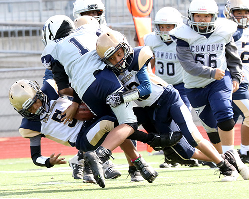The Cowboys went to work early and often in this game. They had two fumble recoveries on the first two kickoffs of the game by Leon Wilkinson that led to a 13 -0 start. Then the defense went to work, led by LeBron Adams who had numerous tackles and Zavier “X-man” Traxler who had an interception and return for a touchdown. The defense played like a pack of hyenas hungry for the ball. The offense ran like a well-oiled machine, scoring on all possessions. Sir Jewel Glover scored on a 50-yard run and 75-yard pass play from Lamar Darden, Jr.. Esquire Williams had runs of five yards and 65 yards, Lamar Darden, Jr. had a 6-yard quarterback sneak for a score. Also scoring extra points were Jorden Mack and Nehemiah Wilturner, as well as Sir Jewel Glover. This was a complete team effort for the Cowboys this weekend, where every player could be mentioned in doing something great. It was a hard fought battle for the Panthers as both the offense and defense did their best to stay competitive in this contest, but the Cowboys were too much this week. Hats off to the Panthers but the season is not over. There are still more games to win.